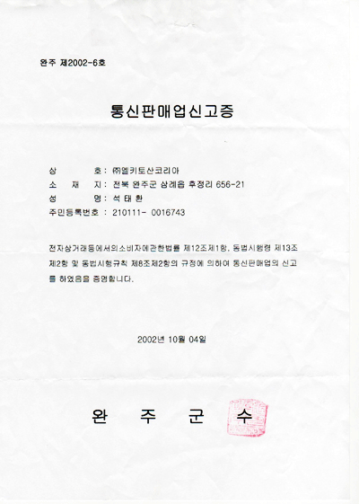 (주)엘키토산코리아 | 관리이사 : 이윤서 | 전화 : 010-5509-4499